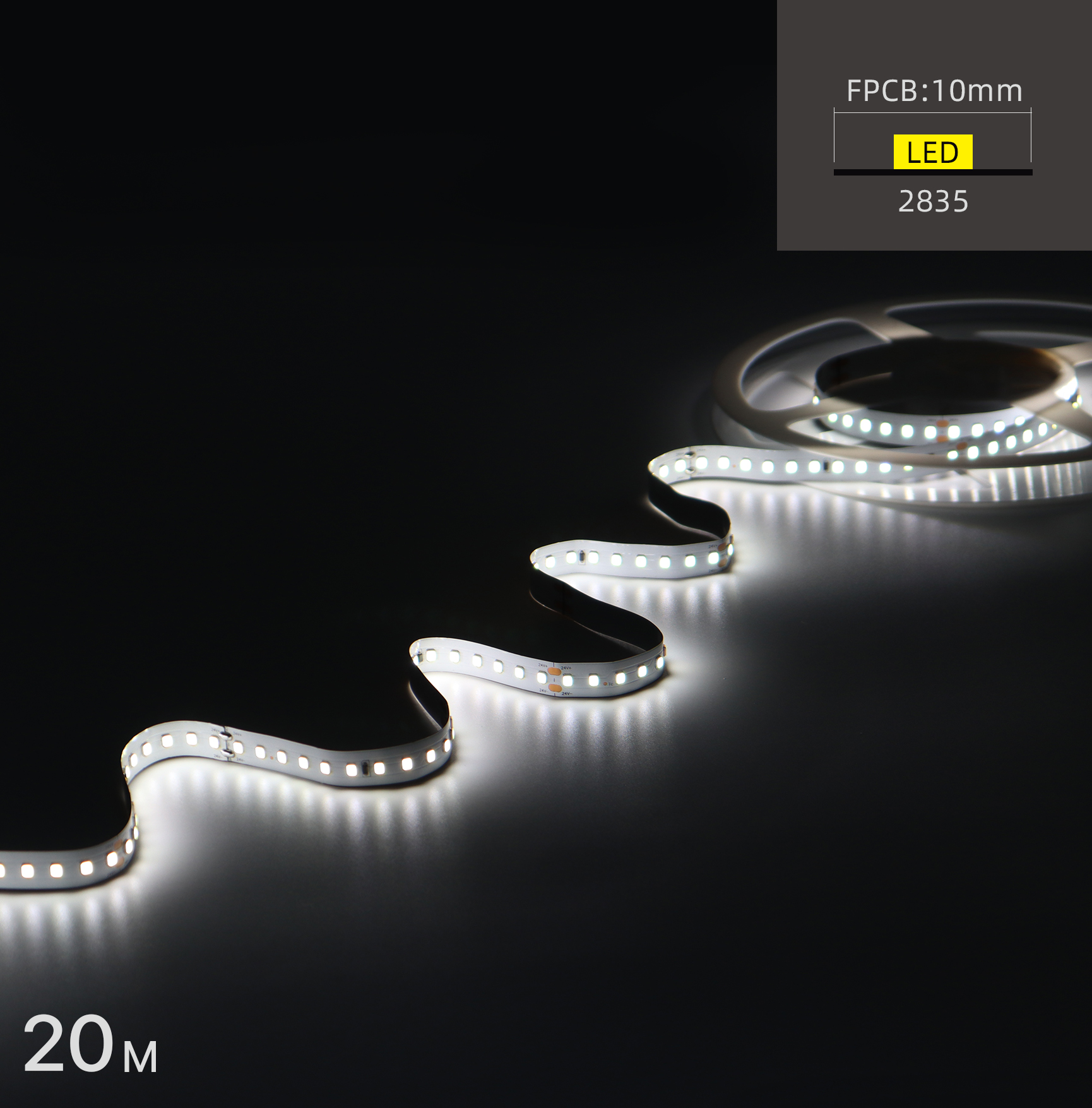 2835LED-W10mm-120LEDs-DC24V-20M